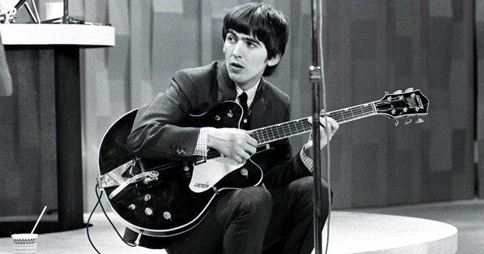 Desde pequeño, escuchaba todo tipo de música por la radio, desde el viejo music-hall británico hasta el country de Hank Williams. A los trece años le compró a un amigo su primera guitarra, por algo más de tres libras. Por entonces se hizo amigo de Paul McCartney, con quien realizaba el mismo trayecto diario en autobús. Paul le presentó a John Lennon, con quien formaba el grupo The Quarrymen.