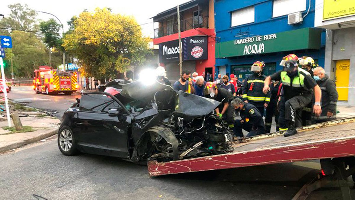 Para rescatar el cuerpo de una de las jóvenes fallecidas tuvieron que intervenir los bomberos, debido a que la carrocería del auto había quedado totalmente destrozada.