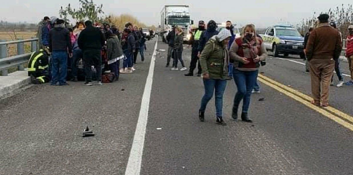 Los peritos trabajaron en el lugar para conocer las causas del accidente. Testigos informan que el vehículo más grande intentó pasar a la moto y dio con la parte derecha de la camioneta.