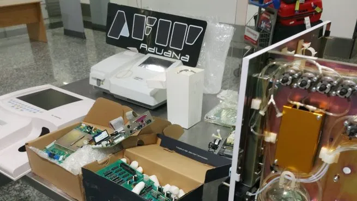 El personal de la Aduana, en ese contexto, realizó el debido procedimiento: realizó una inspección exhaustiva y encontró dos equipos de análisis de sangre con plaquetas, gabinetes, cables y otros elementos y valuados en $2.300.000, algo que la ciudadana ecuatoriana no pudo explicar.