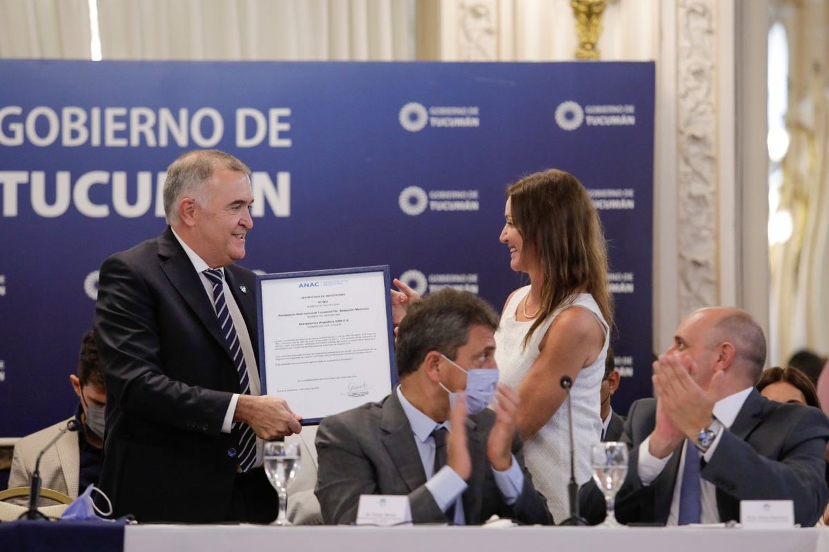 El viernes pasado, el jefe de Gabinete, Juan Manzur, entregó en Tucumán, junto al presidente de la Cámara de Diputados de la Nación, Sergio Massa; el ministro de Transporte, Alexis Guerrera, y el gobernador provincial, Osvaldo Jaldo, la certificación de la Organización de Aviación Civil Internacional (OACI) del aeropuerto Benjamín Matienzo.
