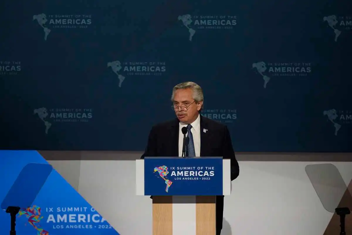 El presidente Alberto Fernández expuso ayer en la reunión plenaria de apertura de la IX Cumbre de las Américas, que se desarrolla en la ciudad estadounidense de Los Ángeles. Entre otros temas, el mandatario lamentó la ausencia de Cuba, Venezuela y Nicaragua, y cuestionó a la OEA (Organización de Estados Americanos), pidiendo que sea reestructurada y sus miembros removidos.