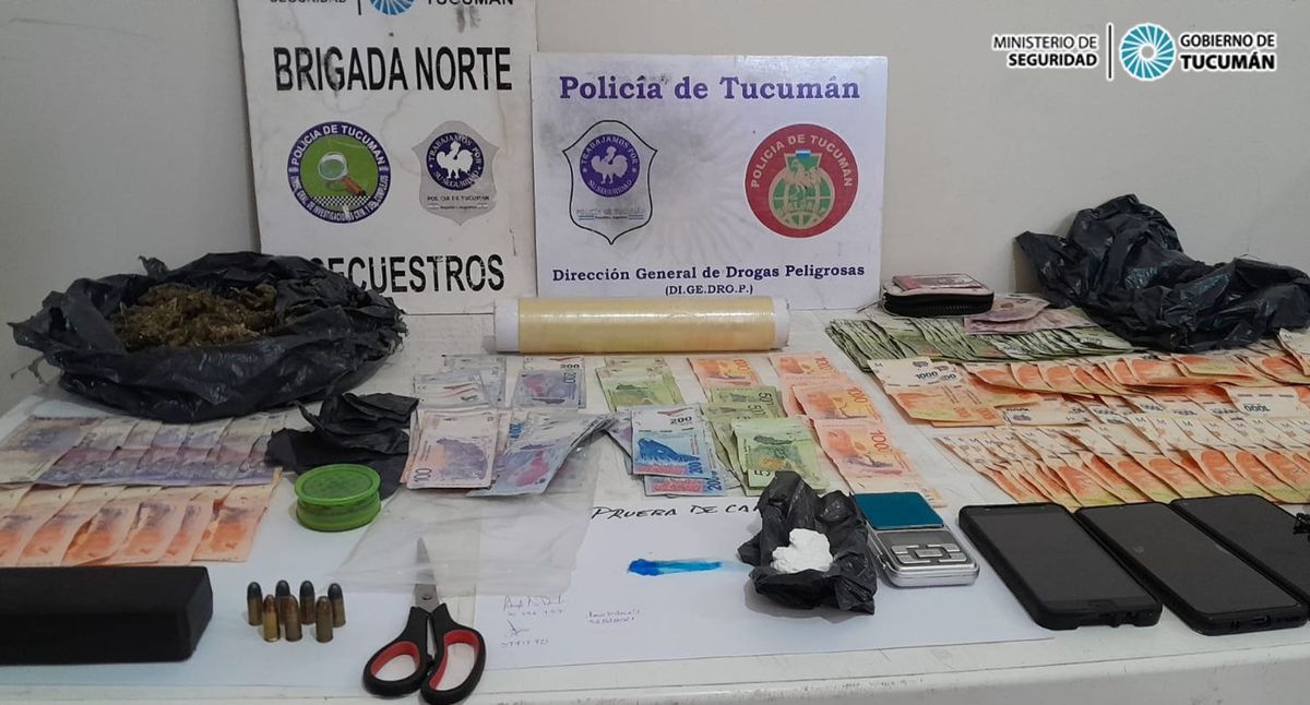 Tras ser otorgada, la orden de allanamiento se concretó este domingo, “realizada la requisa y el registro de la vivienda se logró el secuestro, por la causa, de nueve cartuchos de 9 mm de arma de fuego, y continuando con la requisa se encontraron sustancias prohibidas y a raíz de esa situación se dio intervención a la Didrop Capital”, precisó el comisario Leal.