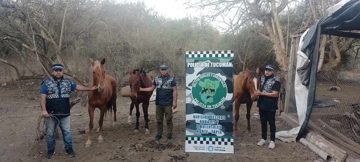Se trata de dos caballos y una yegua que fueron trasladados en primer momento a la Base Operativa en Tapia y luego hasta los predios de la División Caballería de la provincia para su resguardo y pericias correspondientes.