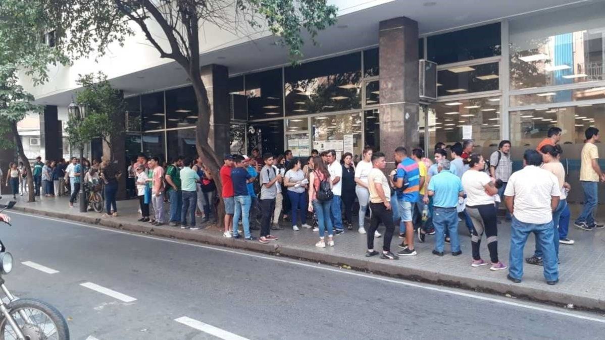 El interior del organismo está colmado, pero las veredas colapsadas por las interminables colas que realiza la gente desde temprano. La fila arranca por 25 de Mayo y sigue por Córdoba hasta Laprida.