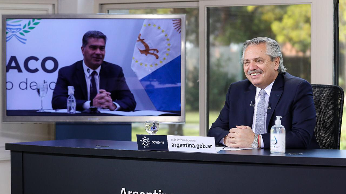 Alberto Fernández participó este mediodía, a través de una videoconferencia, del anuncio del proyecto de inversiones de la empresa brasileña Santana Texti.