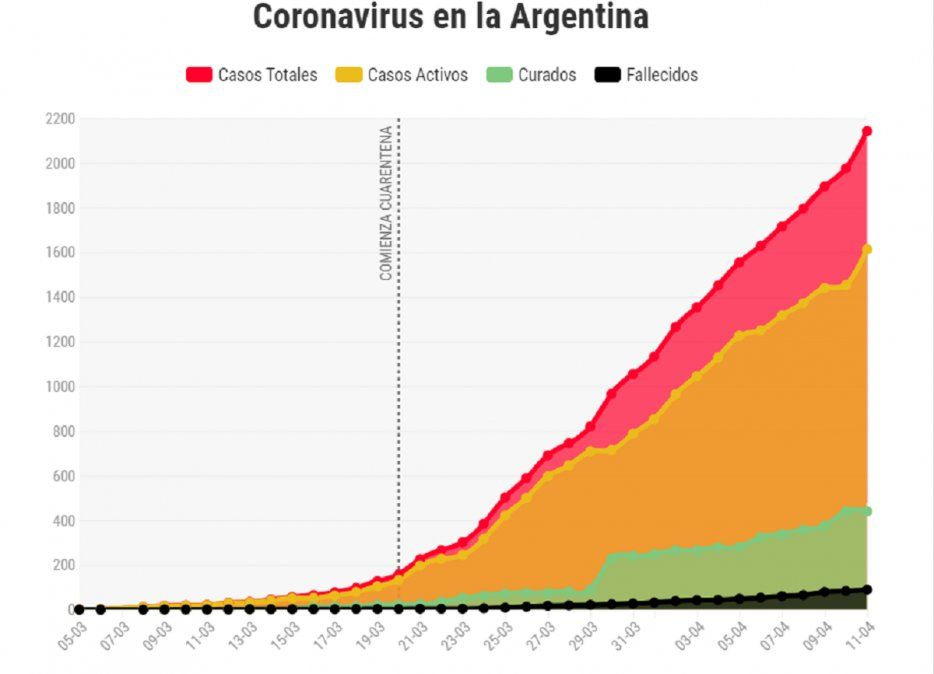 El Ministerio de Salud de la Nación informó este sábado que se registraron 167 nuevos casos y seis muertes por coronavirus en la Argentina, por lo que el total de infectados es de 2142.