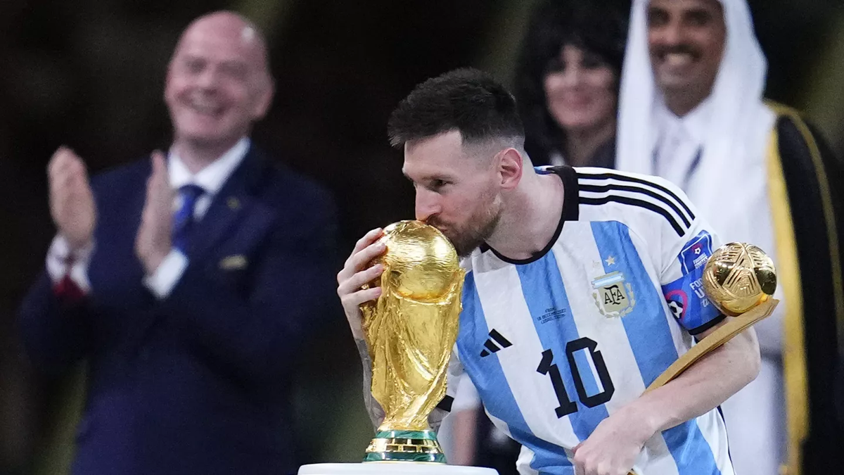 En el posteo se aprecia de manera única la copa que Lionel Messi levantó el 18 de diciembre y que luego fue llevada hacia Suiza para descansar en una vitrina en el museo de FIFA. Sin embargo, ahora lleva la modificación más deseada: "Argentina 2022".