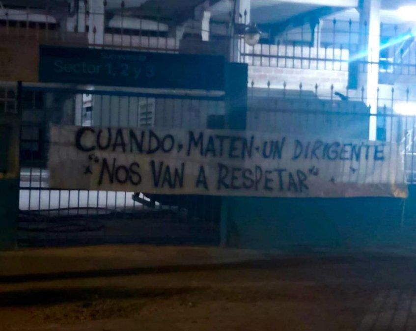 Cuando maten un dirigente “nos van a respetar”, es la leyenda de la bandera que apareció colgada en el Monumental.