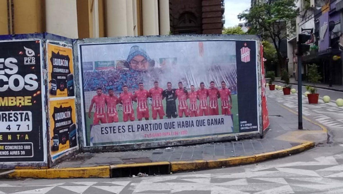 "En el clásico más importante de la historia, demostraste lo que sos" y "este es el partido que había que ganar", rezan las imágenes que aparecen en el microcentro de la capital tucumana.