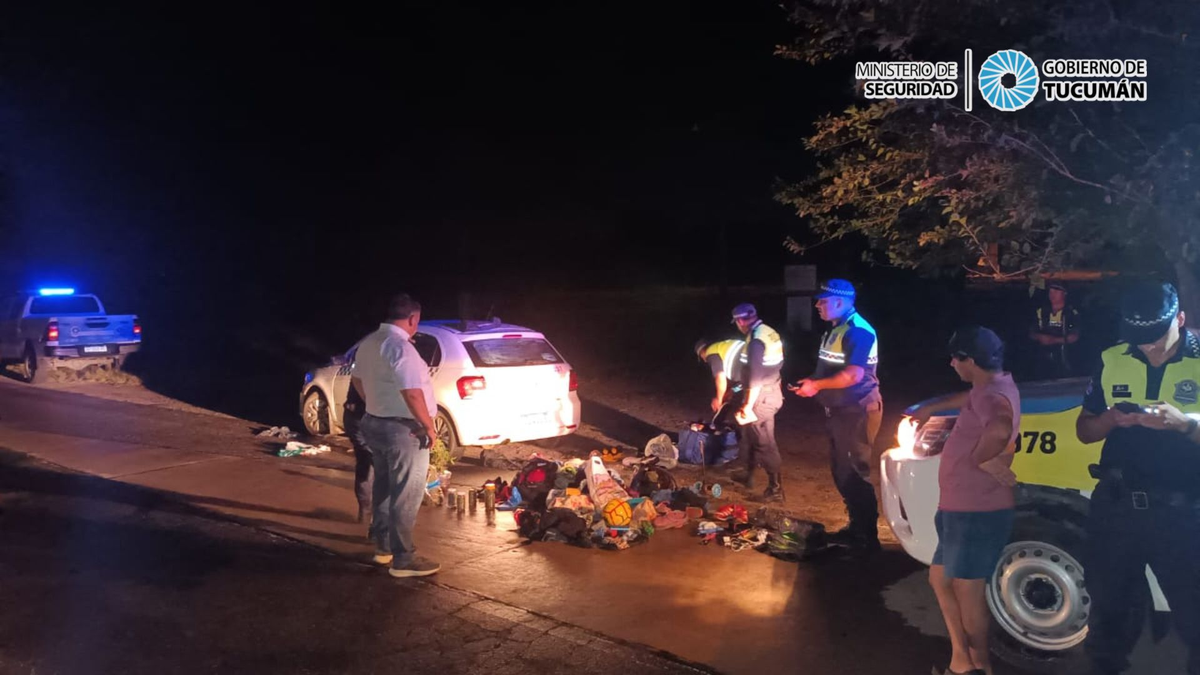 En la comunicación, el agente señaló que los desconocidos habían sustraído electrodomésticos, zapatillas, cargadores de celulares, auriculares, entre otros elementos. De esta manera, se comisionó un equipo de la Comisaría de Acheral que se apostó en la ruta 307 a la altura del paraje Alto Verde, donde finalmente lograron interceptar el automóvil en el que viajaban tres hombres, una mujer y tres menores.