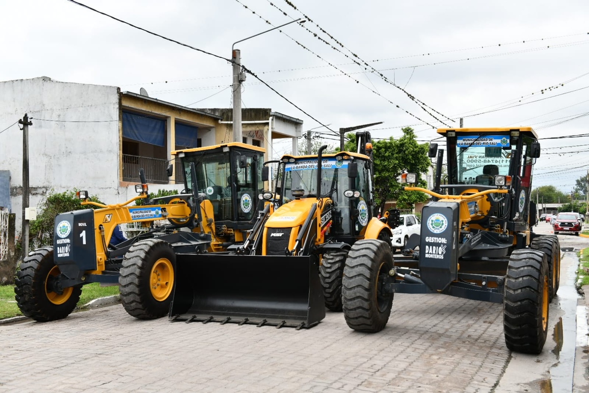 El Gobernador visitó Banda del Río Salí, dejó inaugurado 400 metros lineales de pavimento articulado y entregó dos motoniveladoras y una retroexcavadora
