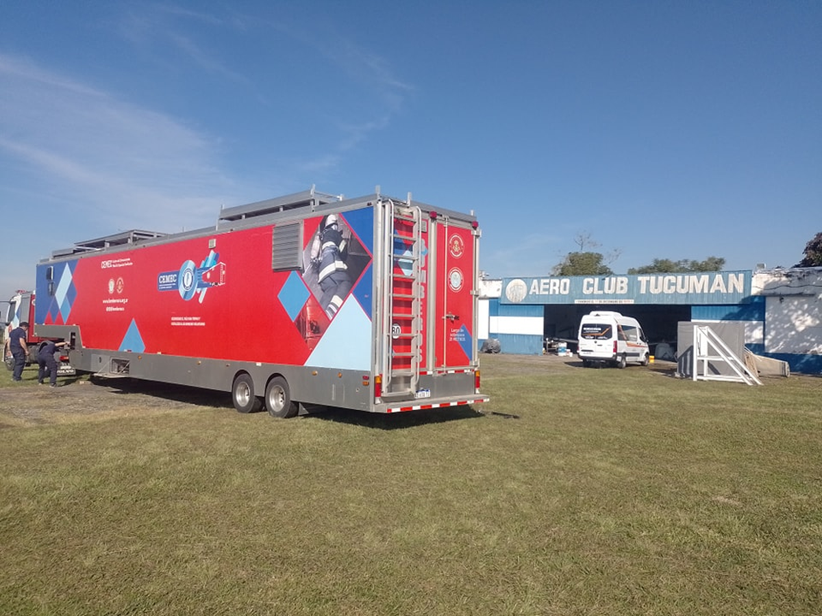 En la jornada de ayer llego el CEMEC (Centro de Entrenamiento Móvil de Espacios Confinados) a Yerba Buena. Este gigante de la capacitación brindó una jornada de formación este sábado en el Aeroclub Tucumán a Bomberos Voluntarios de Yerba Buena.