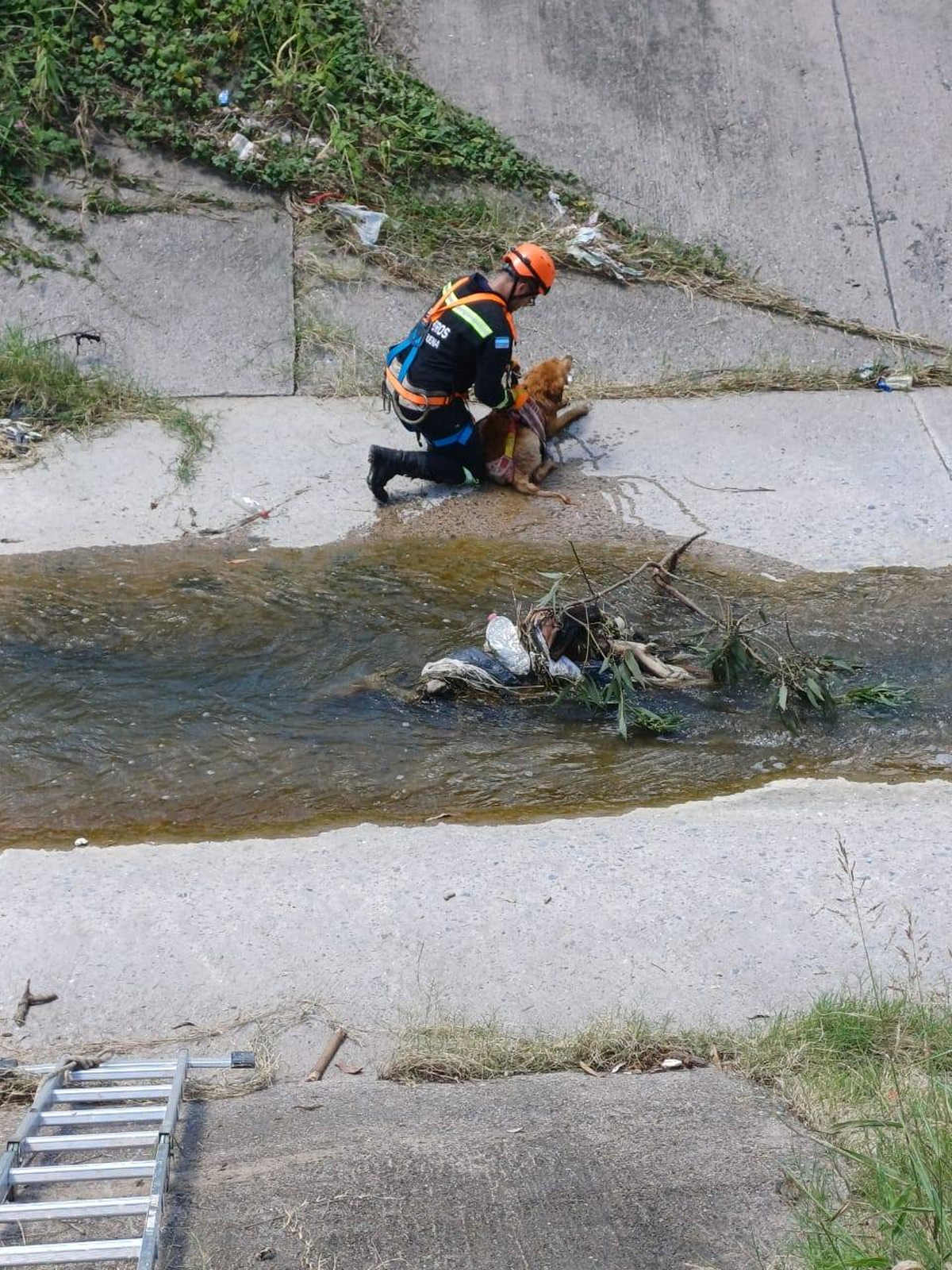 Bomberos de Yerba Buena rescataron a un perro que cayó a un canal