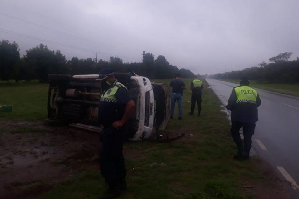 Una vez en el lugar, observaron al móvil TUC-0510 perteneciente a la Comisaria de 7 de Abril, volcado a la vera de la ruta, también se visualizó a empleados policiales que fueron trasladados a la policlínica de la ciudad de Alderetes.
