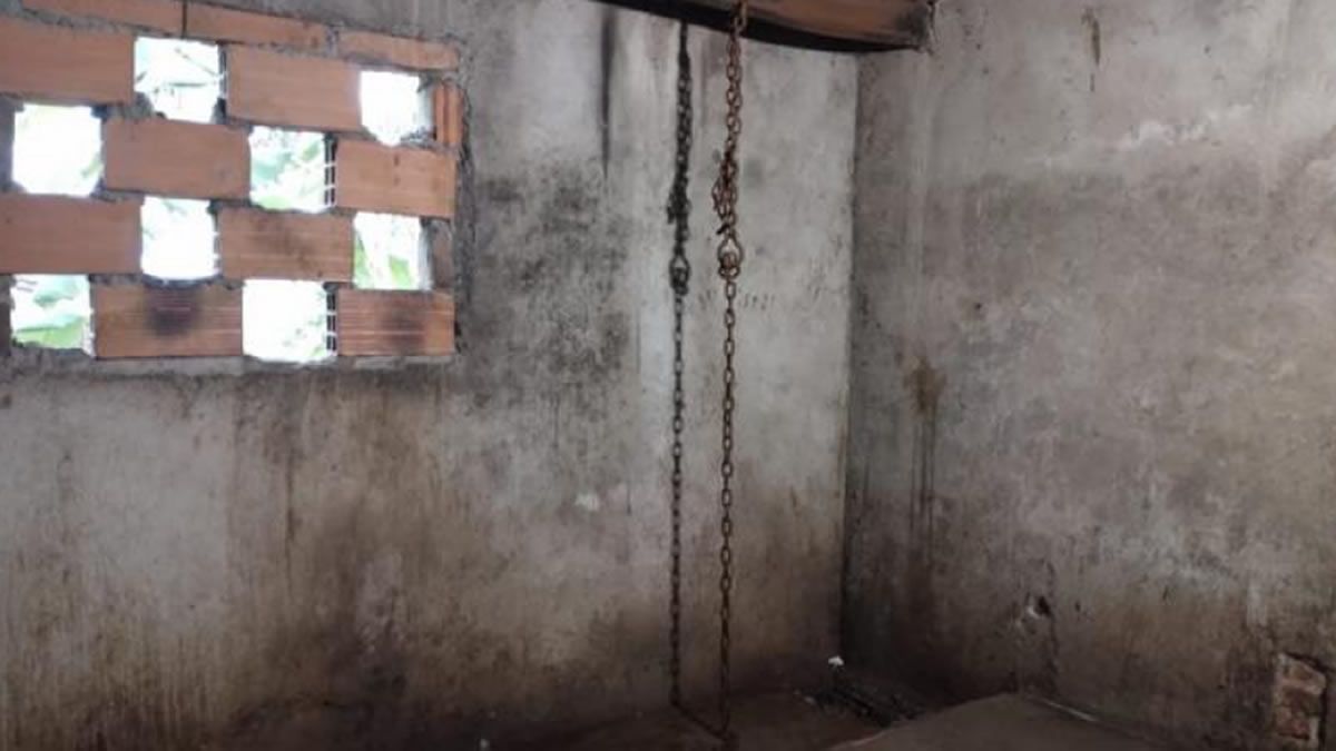 Tras un allanamiento en el barrio 21 de Septiembre, efectivos policiales presenciaron la deplorable situación en la que vivía un joven en cautiverio, que se encontraba encadenado de pies y manos en una habitación precaria.