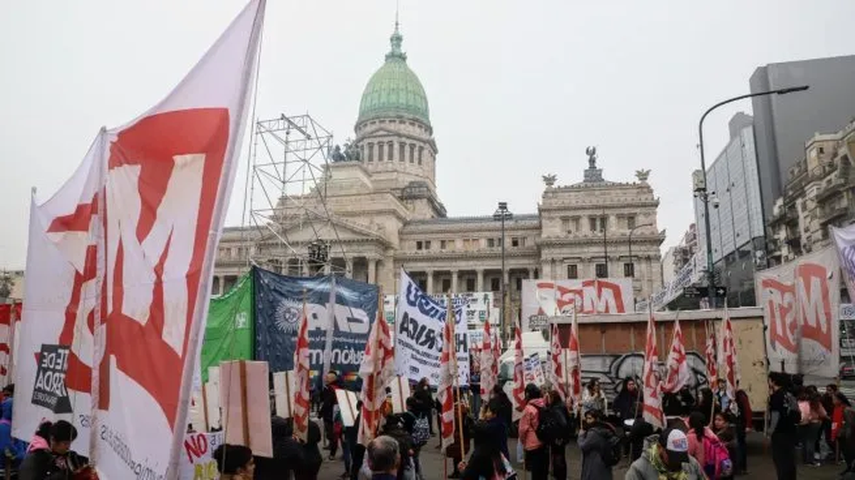 La Confederación General del Trabajo (CGT), organizaciones sociales y movimientos políticos se manifiestan este miércoles, 12 de junio, desde las 9 en las afueras del Congreso en rechazo de la ley Bases. Ya comenzado el debate en la Cámara de Senadores.