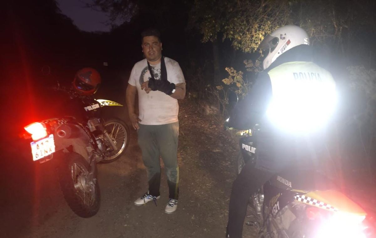 De inmediato, el personal policial integrado por el Cabo Marcos Valdez y el Cabo Pablo Sánchez ingresaron por la Calle 15, unos 5 km aproximadamente. Allí, a unos metros de un río, en pendiente pudieron localizar al hombre de 34 años, que se encontraba con una herida en un brazo. Los efectivos procedieron a rescatarlo en los vehículos policiales y llevarlo junto a su rodado (Bicicleta de MTB), hasta la Ruta 338. Desde allí, fue trasladado hasta un nosocomio de la capital, para su revisión.