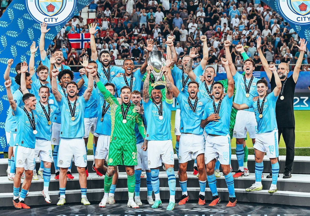 Julián Álvarez sigue acumulando títulos en sus vitrinas. Es que se acaba de consagrar campeón con Manchester City de la Supercopa de Europa 2023. Luego del empate 1-1 en el tiempo reglamentario, los Citizens vencieron 5-4 por penales al Sevilla de los argentinos y dieron la vuelta en el Estadio Georgios Karaiskakis de Grecia.