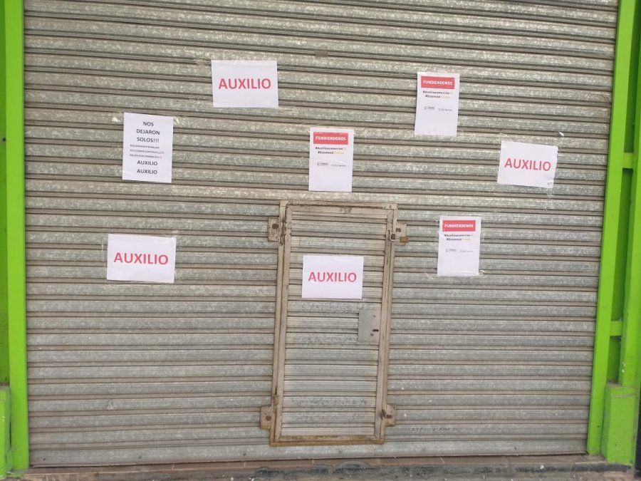 #AuxilioAComerciosYa, #EstamosATiempo, #QueremosTrabajar, #ElComercioEstáDeLuto, son algunos de los hashtags que se utilizan en los carteles pegados en las persianas bajas, además de un pedido de auxilio y una manifestación concreta: "nos dejaron solos".