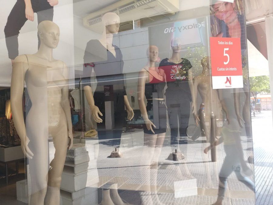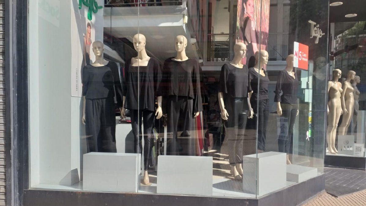 Dueños de comercios ubicaron distintas señales en el ingreso a sus locales, cerrados por la cuarentena, como la colocación de carteles que manifiestan de forma expresa lo que ocurre en el área o la forma de vestir a los maniquíes que hacen de modelo del producto que se intenta vender: los vistieron de luto en señal de que "los comercios se están muriendo".