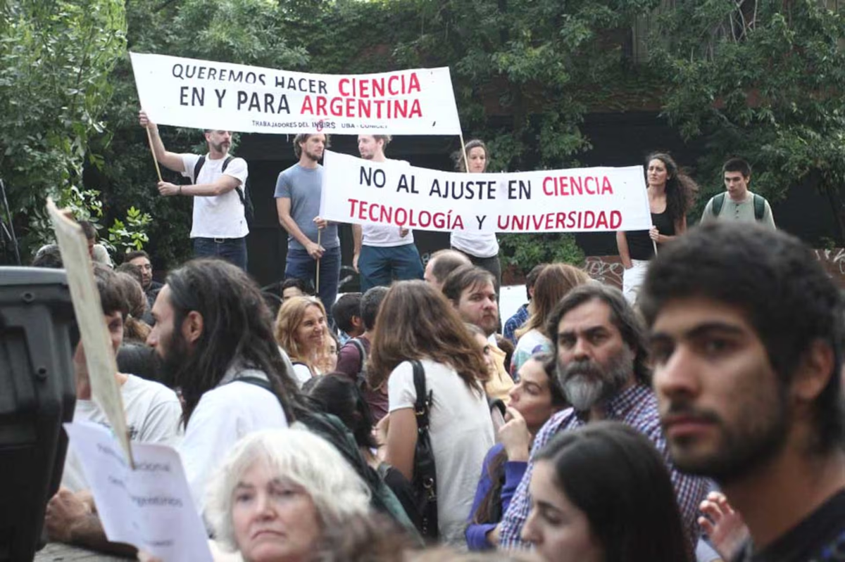 Los carteles y pancartas decían no al ajuste. "Nosotros perdimos un 40% de masa salarial. Tenemos un recorte del 50% de investigadores que ingresaron en la última tanda y un recorte de un 60% en becas. Entonces, lo mínimo que podemos hacer es protestar".