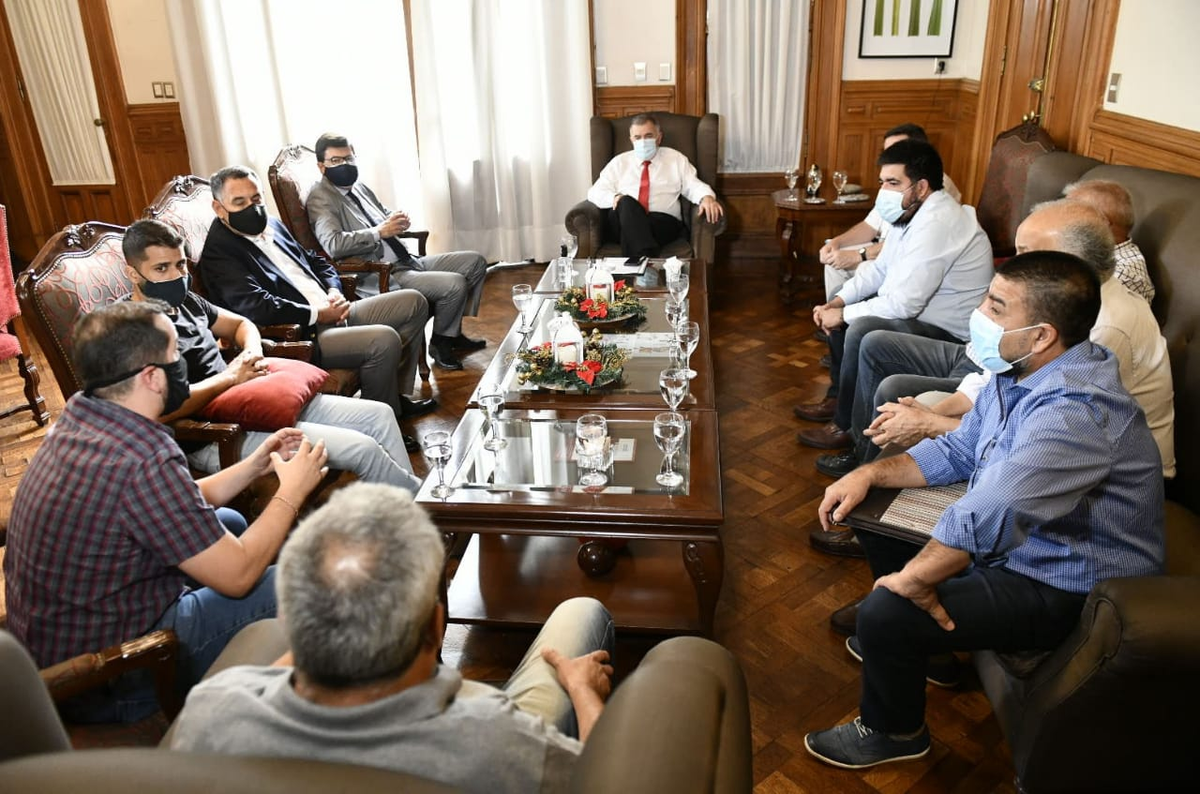 El gobernador, Osvaldo Jaldo, se reunió esta mañana en Casa de Gobierno con el presidente de la Cámara de Transporte y de Turismo de Tucumán, Sebastián Gómez para evaluar los controles del Comité Operativo de Emergencias (COE) y la policía provincial en la salida de los colectivos de pasajeros.