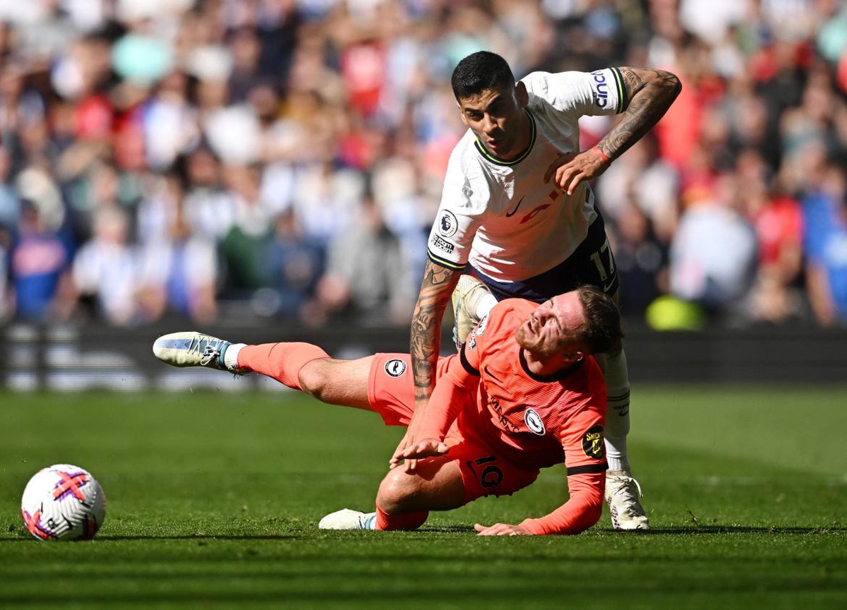 El mediocampista del Brighton & Hove Albion se escapaba por el carril izquierdo cuando el reloj se acercaba a la media hora del primer tiempo y su equipo caía 1-0 en el Tottenham Hotspur Stadium. Giró, cuidó con su cuerpo el balón y el danés Pierre-Emile Højbjerg pasó la línea de la pelota para defender. Atrás llegaba a toda velocidad el Cuti, que alcanzó a quitarle la posesión, pero en la acción se llevó puesto a su compañero campeón del mundo con una dura entrada en la parte trasera de la rodilla izquierda .