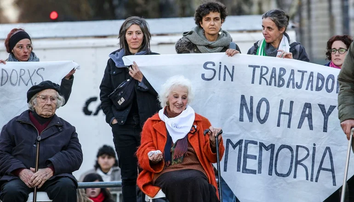 Y siguió: "Por eso volvemos aquí, a nuestro lugar de protesta, donde nos ayudamos entre nosotras, con la lucha de casi 50 años a cuestas por nuestros desaparecidos, por nuestros bebés robados, con el corazón abierto, sin violencia, porque el Gobierno nacional está destruyendo todo lo que hemos construido para esta búsqueda. Las políticas de derechos humanos de la Argentina son admiradas por todo el mundo, que nos ve como un país que pudo acceder a la verdad con juicios ejemplares, con campos de concentración convertidos en Espacios para la Memoria, para educar a las nuevas generaciones en los valores democráticos y para que los crímenes atroces cometidos por el Estado terrorista no se repitan. Políticas para que no se roben bebés, para que se proteja a las infancias".
