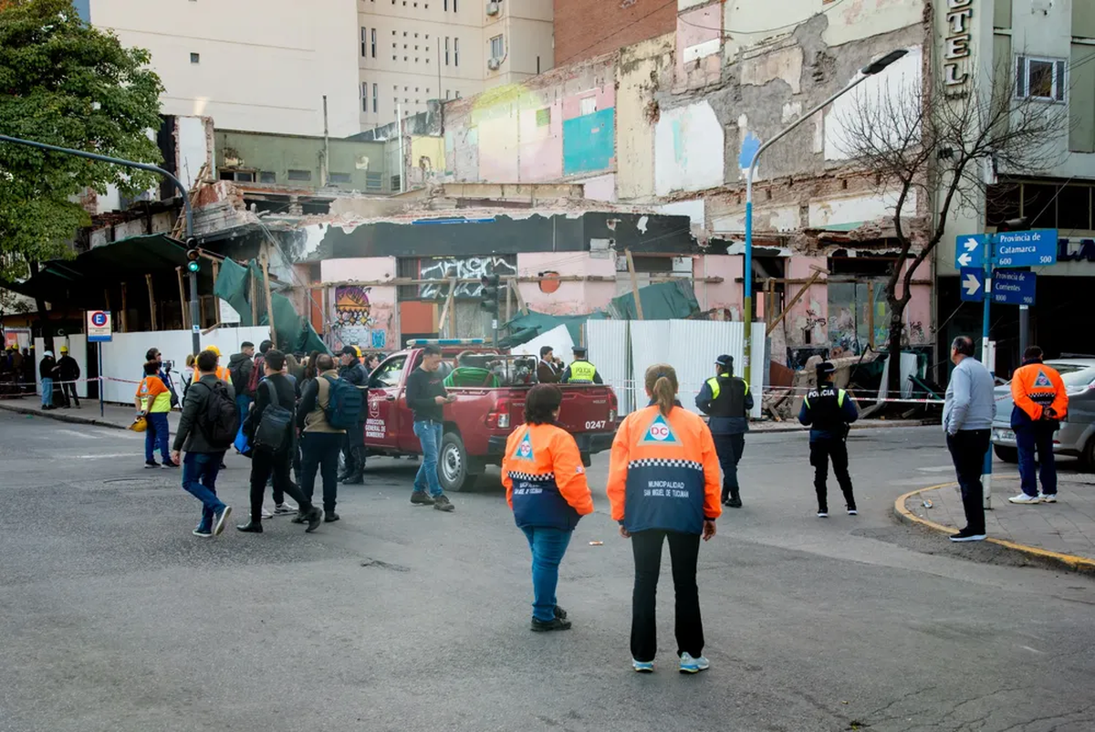 Distintas áreas operativas de la Municipalidad de San Miguel de Tucumán acudieron este viernes para atender la situación de emergencia generada por el derrumbe de una vieja construcción que estaba siendo demolida en calle Corrientes y Catamarca, en Barrio Norte.