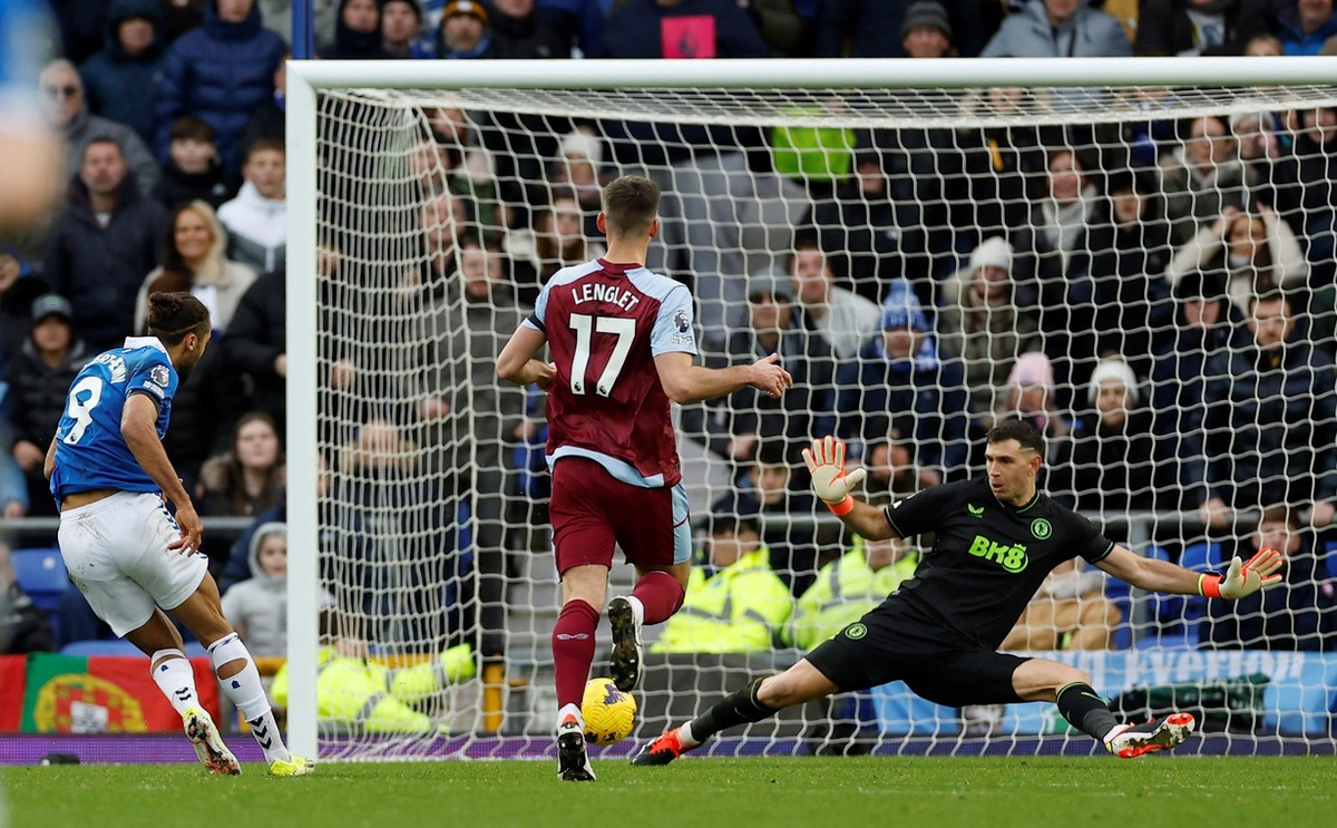 Cuando el reloj promediaba los 44 minutos, los dirigidos por Unai Emery quedaron mal parados en el fondo y en una contra del Everton, el atacante, Dominic Calvert-Lewin, recibió la pelota en soledad y tras correr varios metros quedó mano a mano con el Dibu y al querer definir contra un palo, el argentino lo esperó y le tapó el mano a mano con su pierna derecha.