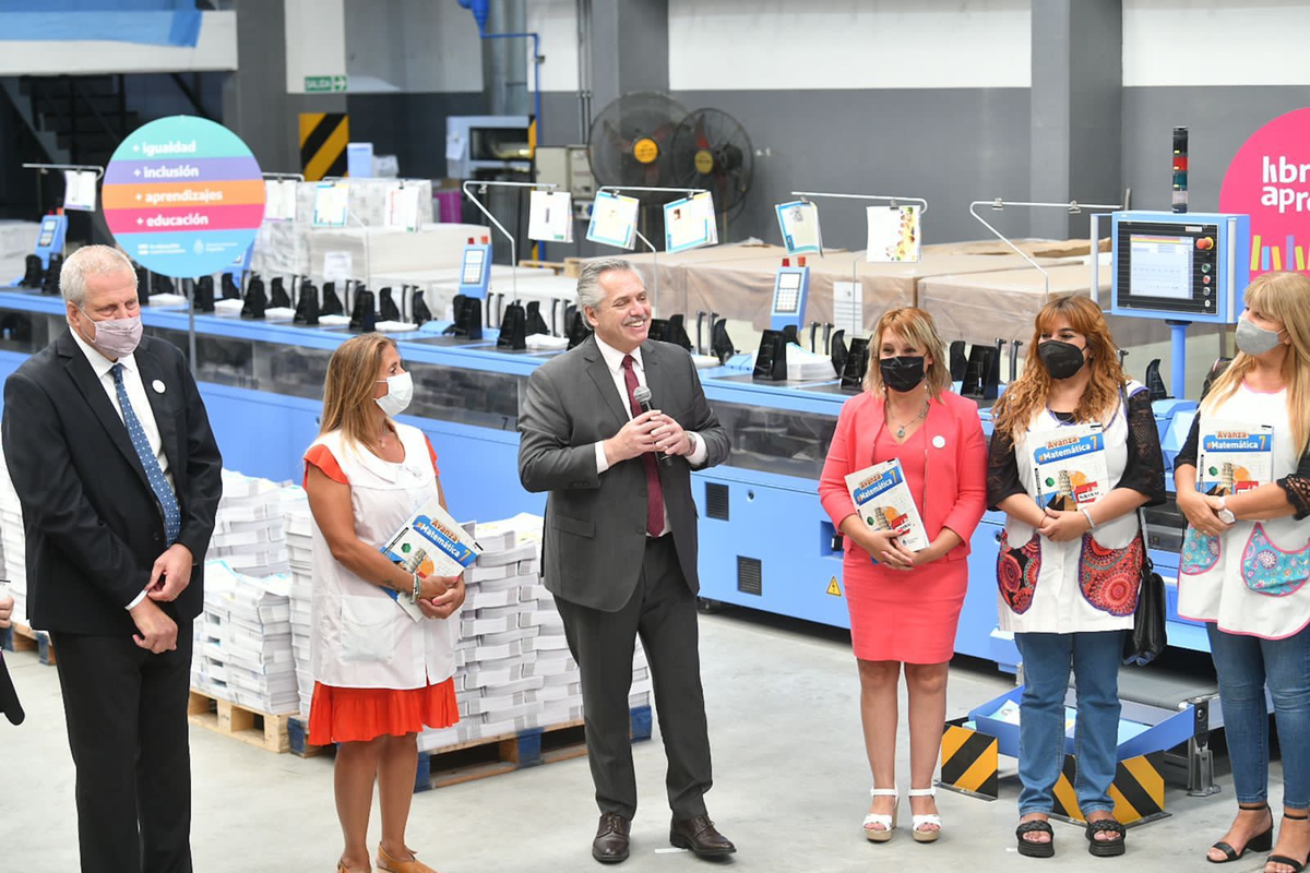 “Necesitamos que nuestros chicos reciban el mejor aprendizaje y lo hagan en la escuela pública”, afirmó este mediodía el presidente Alberto Fernández al recorrer la planta de Gráfica Argentina SRL, ubicada en la localidad bonaerense de Loma Hermosa, una de las empresas donde se imprimen los textos del programa “Libros para aprender”, que contempla la distribución de ejemplares sobre matemática y lengua en escuelas primarias de todo el país.