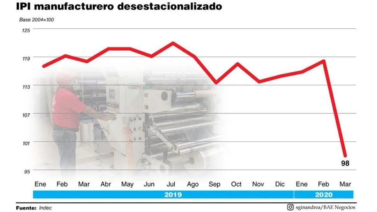 El histórico dato de caída de 17% intermensual y 16,8% interanual en marzo fue publicado ayer por el Indec. En el mismo informe, la encuesta de expectativas de los industriales mostró que el 74% espera que la demanda interna siga empeorando y que el 63% proyecta más caída en las exportaciones.
