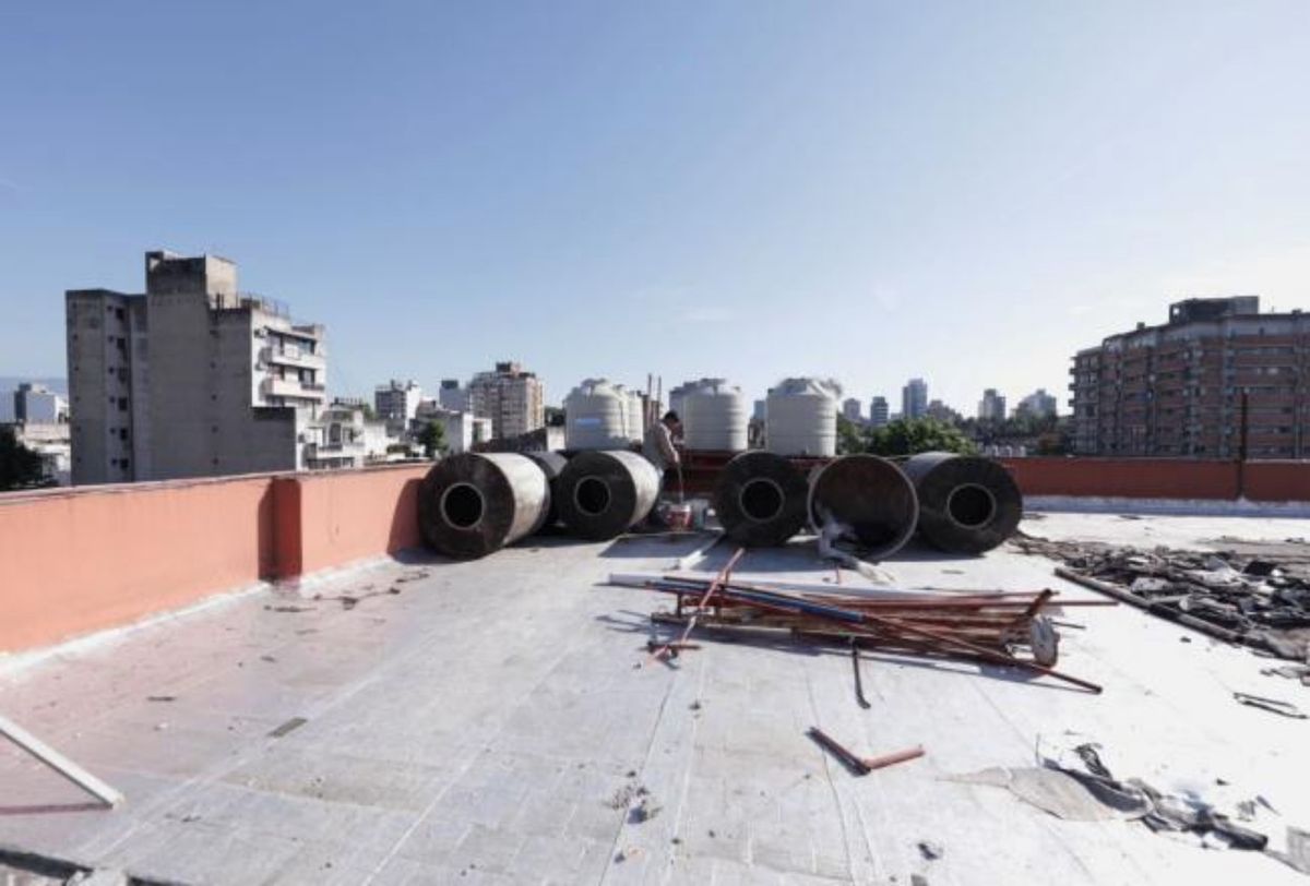 Equipos de los Ministerios de Educación y Obras Públicas, visitaron la Escuela Pdte. Nicolás Avellaneda de la capital tucumana, para supervisar la reanudación de trabajos de impermeabilización de cubiertas, reparación del cielo rasos, revoques y cerámicos de los baños, y canaletas en patio cubierto, ejecutados por una empresa privada.