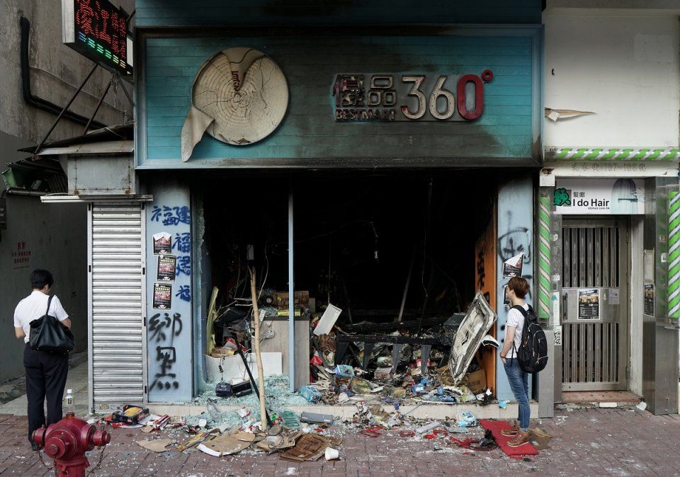 Las grandes y pequeñas empresas han sufrido ventanas rotas, graffiti e incluso incendios por su presunto apoyo a la China continental por parte de activistas preocupados por el hecho de que el gobierno central de Beijing está ejerciendo un mayor control sobre la región administrativa especial a expensas de las libertades democráticas.