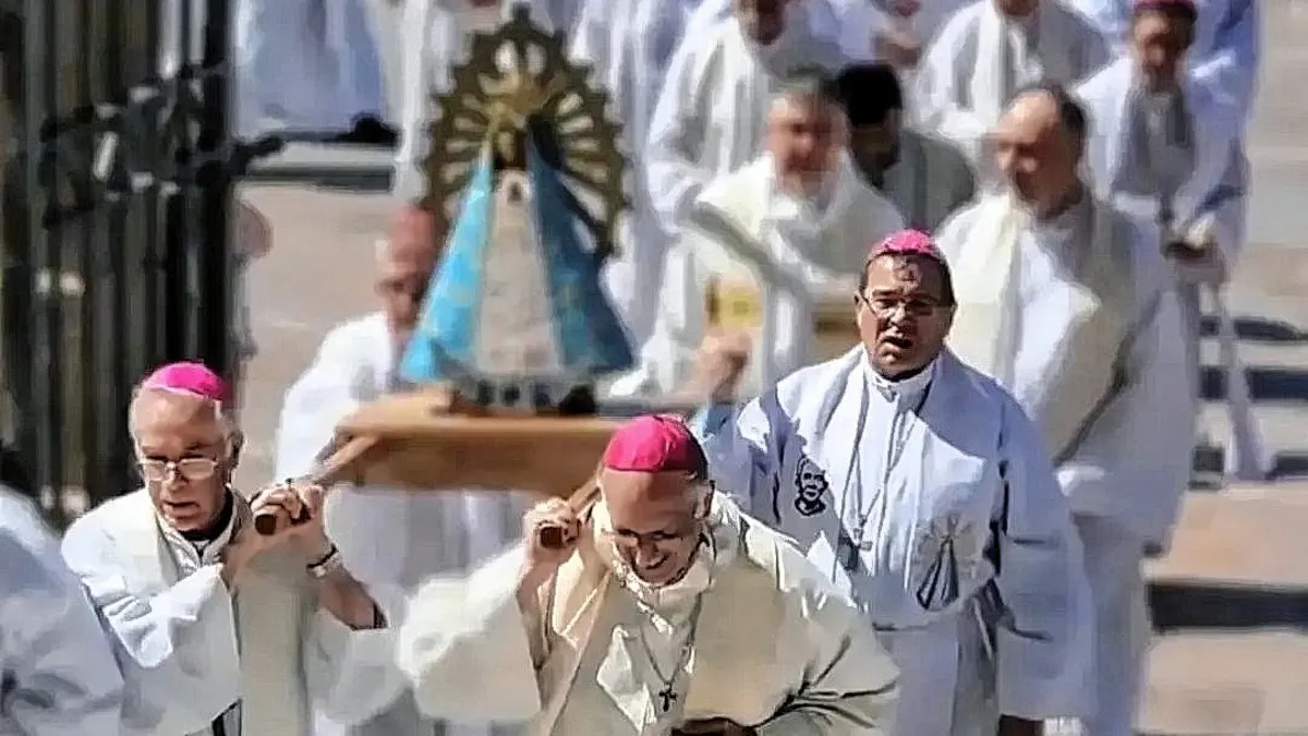 Y agregó: "Estamos hoy aquí los obispos de la Argentina, Venimos no con nuestros méritos, sino con nuestros cansancios y opresiones, Sin fingimiento, sin ocultar miserias y debilidades, porque queremos unirnos a la súplica de nuestra gente, y pedir con ellos a nuestra Madre que nos cuide: que cuide a nuestras familias, a nuestros abuelos, a nuestros niños, a los jóvenes entrampados en la droga, que no falte el pan en la mesa, los medicamentos a los enfermos, que haya trabajo digno y un techo para todos, y sobre todo que haya paz, en el mundo y en nuestra tierra”.