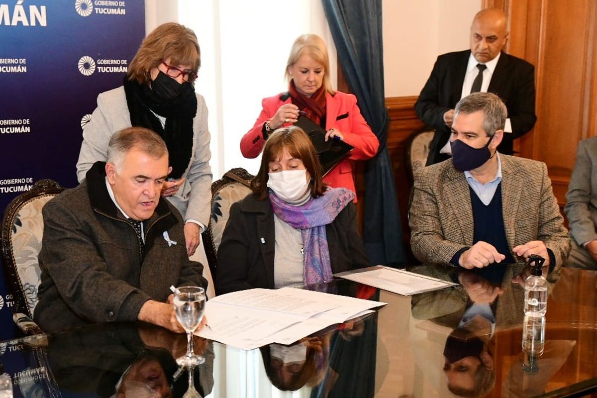 Este jueves se firmó un convenio con el colegio de escribanos para que supervisen el sorteo de las viviendas durante este domingo. El ministro de Obras y Servicios Públicos, Fabián Soria; el presidente del Colegio de Escribanos, Ramón Poliche; y de la interventora del IPV, Nora Belloni, se refirieron al respecto.