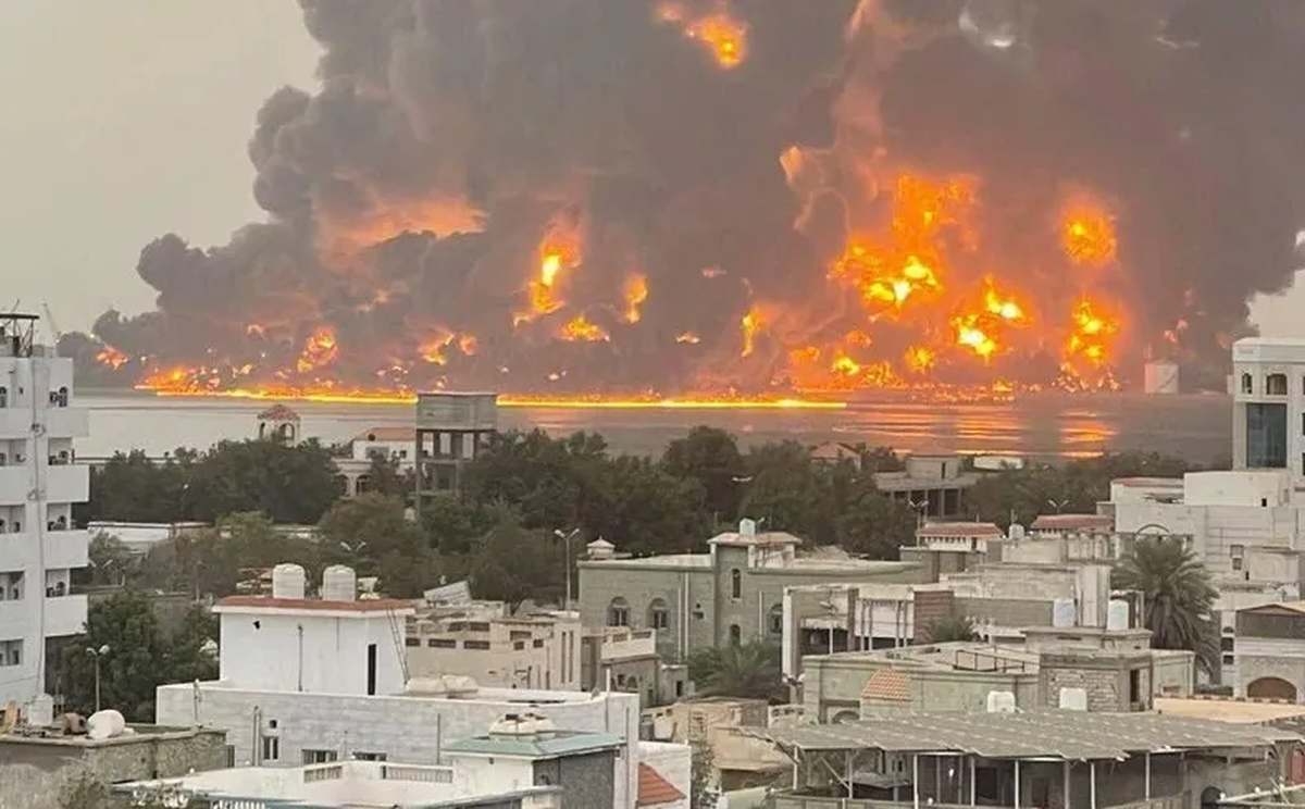 Tras sentirse fuertes explosiones, la televisión Al Masirah, dirigida por los rebeldes, informó sobre una "serie de ataques" contra "instalaciones de almacenamiento de combustible" en el puerto.