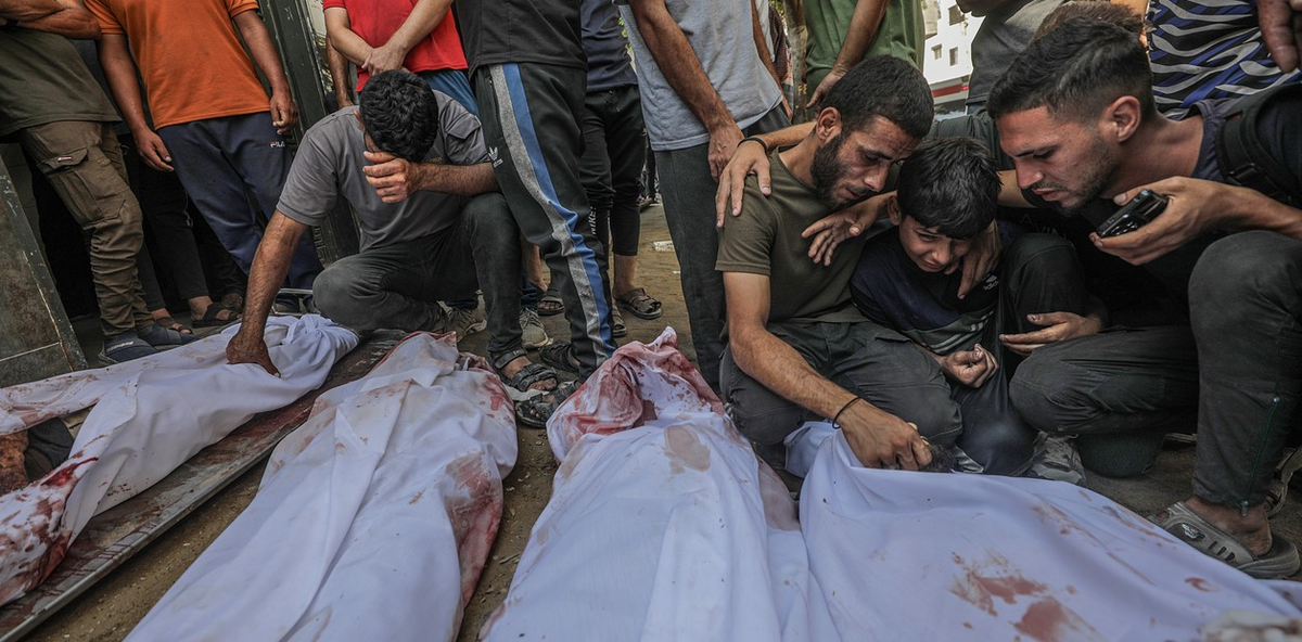 En la morgue del hospital Al Chifa, familias enteras lloraban a los muertos alineados en el suelo.