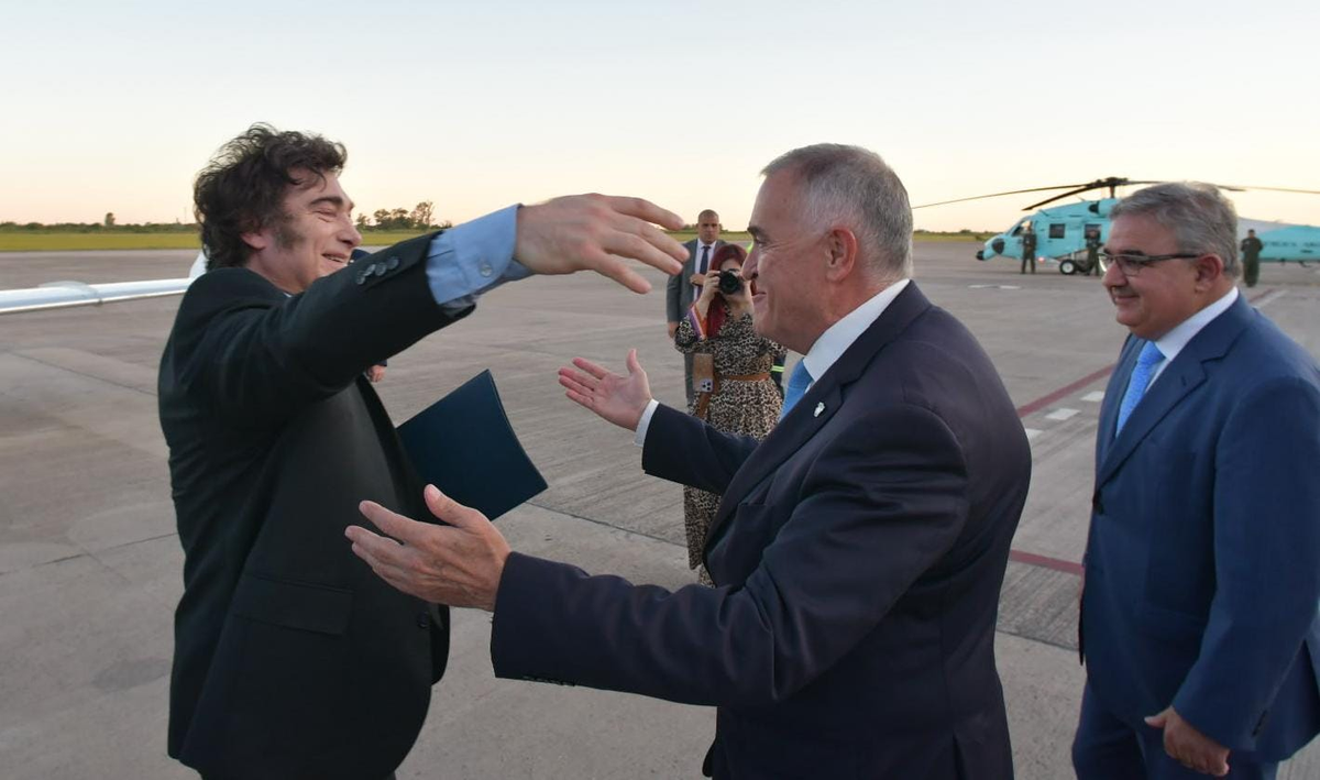 El Gobernador escoltó al primer mandatario en su llegada a la provincia donde llegó para participar de un ciclo de charlas de la fundación Federalismo y Libertad.