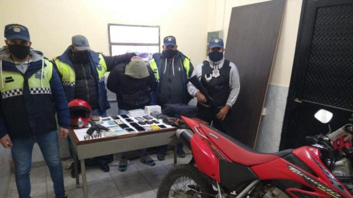 Al aprehender al joven de 26 años, lo requisaron y descubrieron que en una mochila llevaba un arma de fuego, $5.5000 y 13 teléfonos celulares. Se dio intervención a la Unidad Fiscal de Flagrancia III°, desde donde se avaló la aprehensión y el secuestro de los elementos y de la moto en la que circulaba. Los celulares serán sometidos a pericias para determinar a quién le pertenecen y si son robados”, detalló Vizcarra.