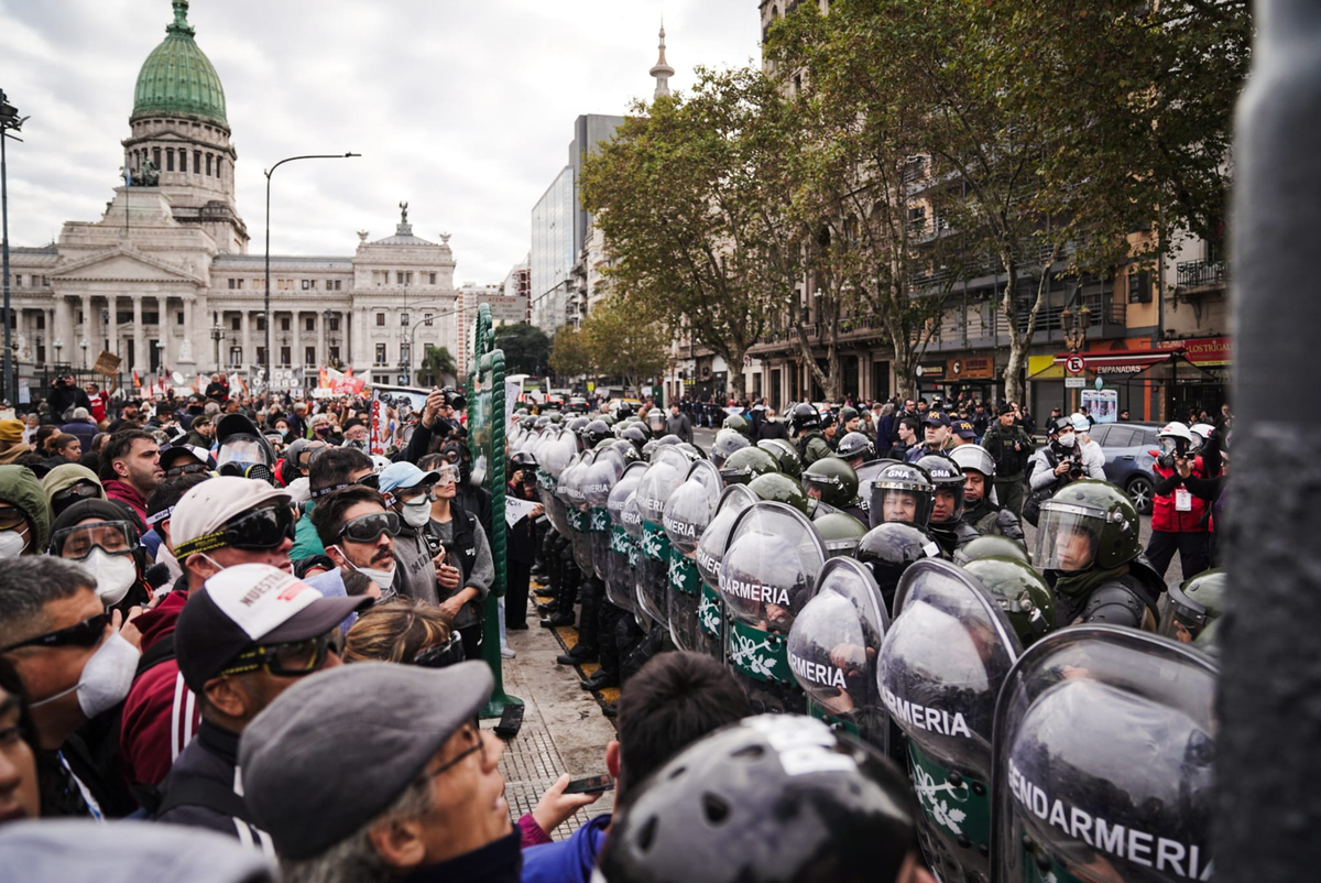 Jubilados y organizaciones sociales se concentran cada miércoles en las inmediaciones del Congreso Nacional con múltiples reclamos al gobierno de Javier Milei.