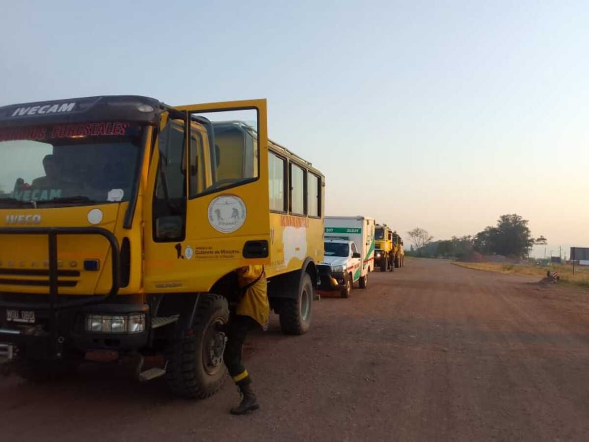 Las tareas se centran en combatir un nuevo incendio que se desató ayer, ubicado en las cercanías de la ciudad de Libertador General San Martin, altura Ruta Nacional 34 y Ruta Provincial 83.