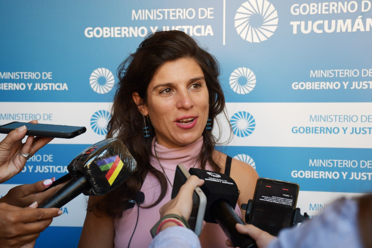 Carolina Vargas Aignasse, ministra de Gobierno, habló con la prensa sobre la instalación de un Centro de Acceso a la Justicia en la Escuelita de Famaillá.