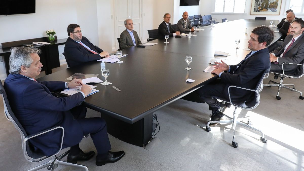 El presidente Alberto Fernández se reunió esta tarde en la residencia de Olivos con representantes de la Cámara Argentina de Especialidades Medicinales (CAEME), quienes se comprometieron a mantener las fuentes laborales y manifestaron su compromiso con las políticas del Estado nacional para contener la pandemia de coronavirus COVID-19.