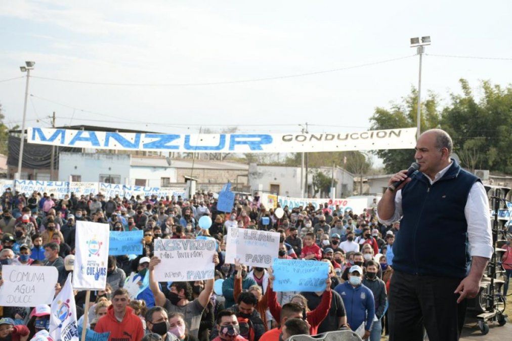 "Aquí estamos trabajando como todos los días. Nos tocaron momentos difíciles. Primero Macri (pero se fue Macri) y después la pandemia, pero vengo a decirles que la pandemia también se va a ir. Aquí están participando las enfermeras que tanto nos vienen cuidando, y también los delegados comunales que pusieron el hombro en medio de esta pandemia. Primero para llevar comida a los que necesitaban y después cuando llegó la vacuna para llevar a la gente a que reciba las dosis. Se nos fueron 5 compañeros y por eso le di la orden a la ministra que vacune a los delegados comunales", afirmó Manzur en su discurso.