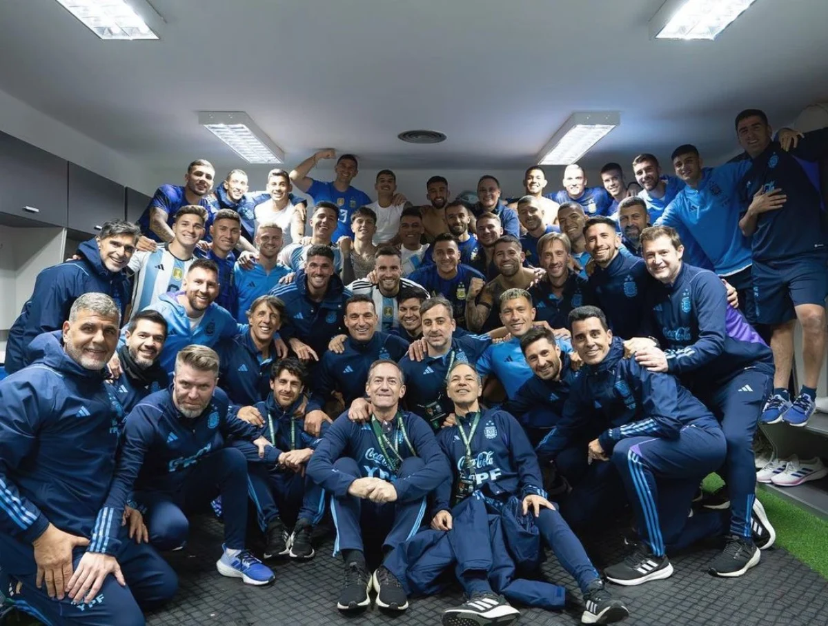 "Vamos", expresó el astro rosarino, junto a emojis de aplausos y de la bandera argentina, junto a una imagen de los festejos del plantel de la Albiceleste en el vestuario tras el triunfazo en condición de visitante.