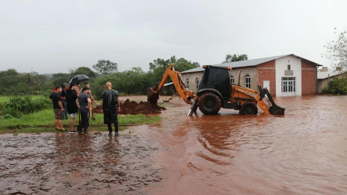 Otro de los municipios afectados por el temporal es Capioví, donde desbordó el arroyo ubicado en el kilómetro 1.461, lo que obligó a desviar el tránsito por caminos alternativos