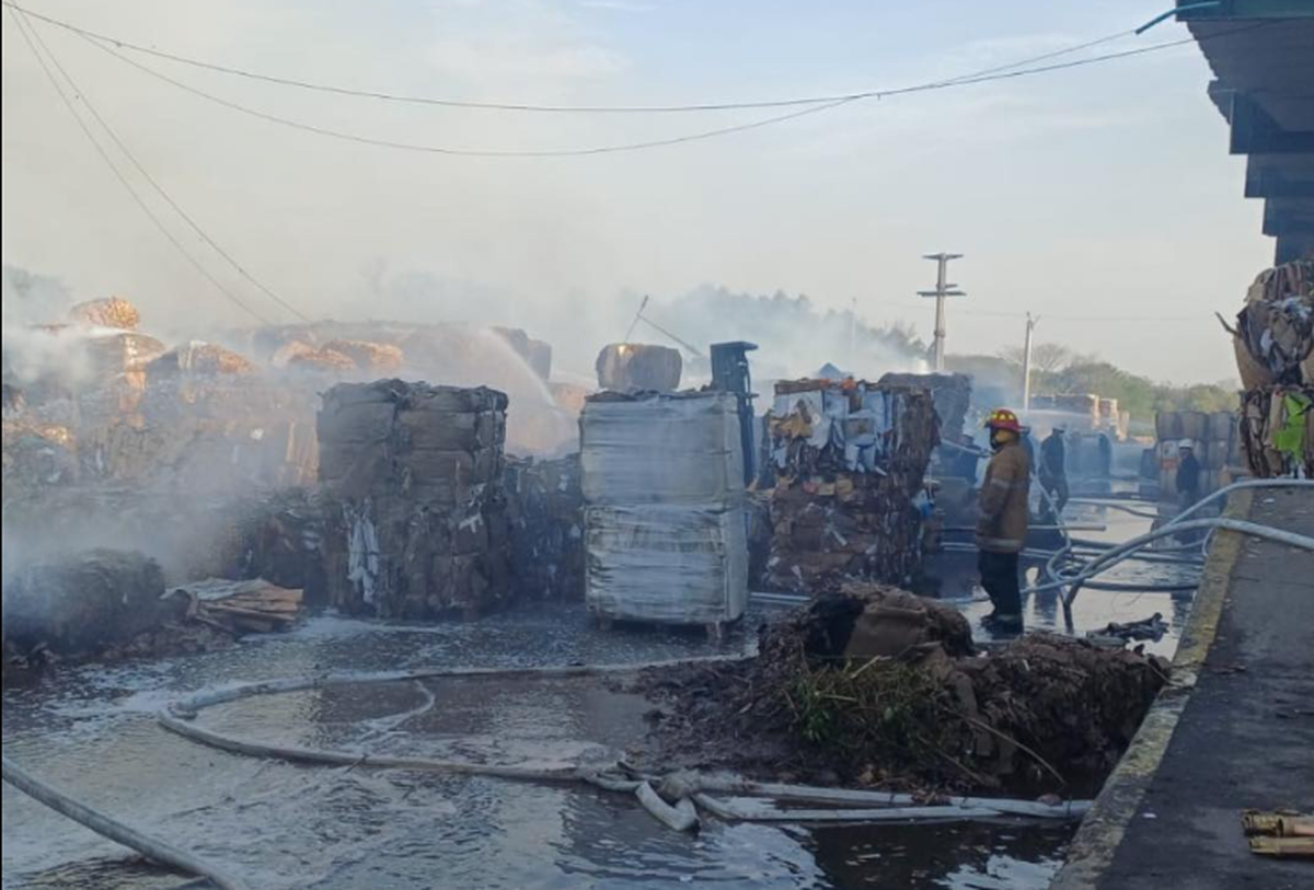 Bomberos de la Policía de la provincia de Tucumán asistieron este sábado en un incendio de una papelera ubicada en San Isidro de Lules.
