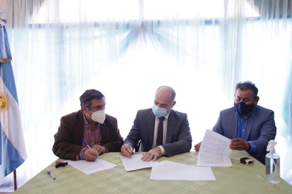 El ministro de Educación, Juan Pablo Lichtmajer; el intendente de Lules, Carlos Gallia, y el secretario general de ATSA, Renée Ramírez, firmaron un convenio tripartito para la implementación de las Tecnicaturas de Nivel Superior de Enfermería, Diagnóstico por Imágenes y Agente Socio Sanitario en la ciudad de Lules. Del encuentro también participaron la secretaria General de Educación y Cultura, Mharta Albarracin de Gallia; la directora del CENT 74, Leticia Triviño y la vicedirectora de la Carrera de Enfermería, Teresa Robles.